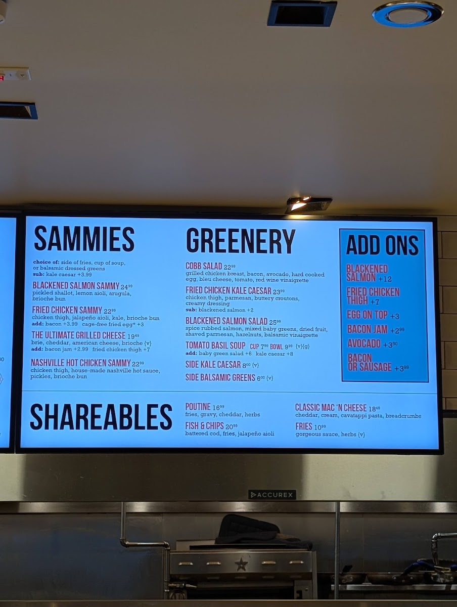 Start your day with comforting dishes like Chicken and Waffles or the Avocado Breakfast Burrito, perfect for morning cravings or a relaxed brunch moment. For midday or evening, the selection of burgers and sandwiches, including The Basic Burger and Fried Chicken Sammy, pair well with crispy sides such as French Fries or Poutine. Lighter options like the Cobb Salad and Blackened Salmon provide balanced choices amid an inviting airport setting.