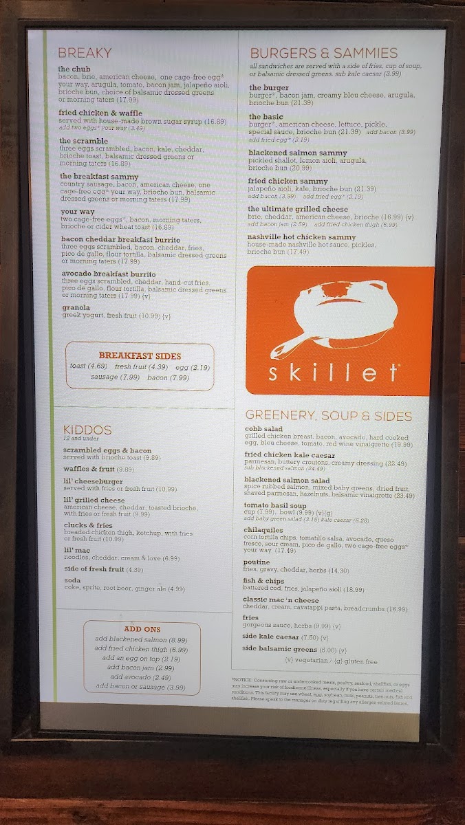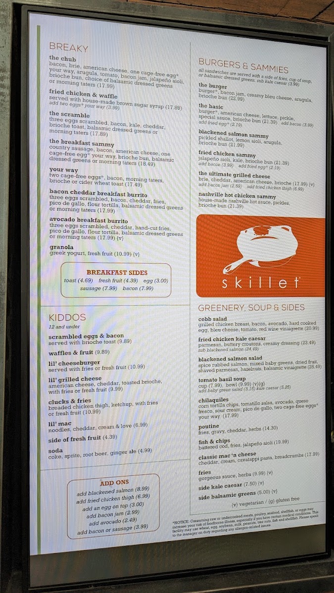 Skillet Airport @ SeaTac International offers a straightforward and approachable American menu designed for travelers and locals alike. Whether you're grabbing a comforting bite before a flight or enjoying a casual meal after landing, the menu balances classic favorites with hearty options that satisfy without fuss.